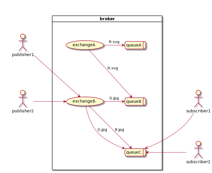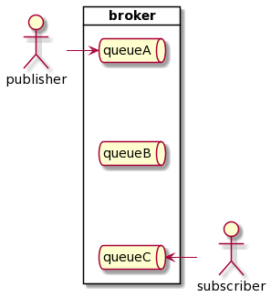 또한, Publisher가 하나의 QueueA에만 Message를 전달하는 것이 아니라 QueueB, QueueC에도 publish를 하는 경우